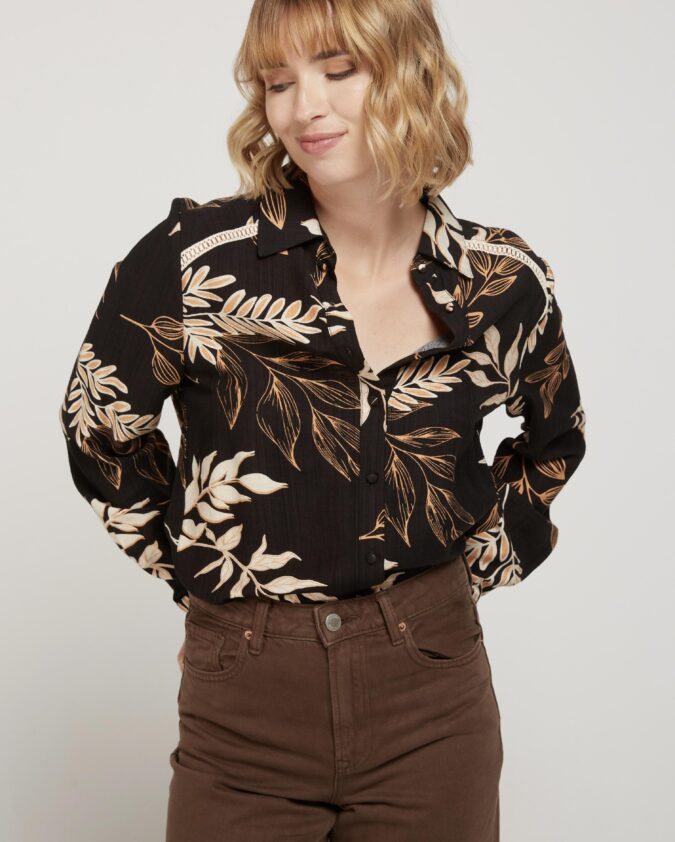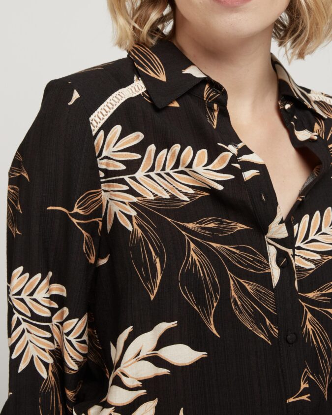 Πουκάμισο με φυλλώδες μοτίβο σε μαύρη βάση.