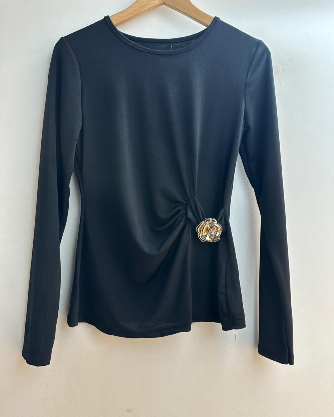Osley - Mochy Μαύρο δαντελένιο πουκάμισο με καμπάνα μανίκια