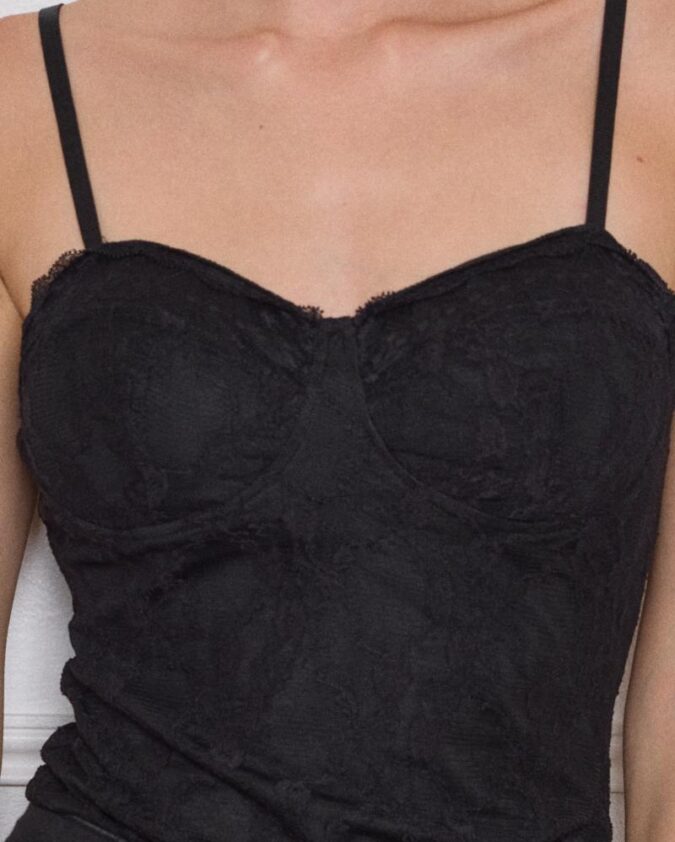 Μαύρο κορμάκι με διαφάνεια και στρας.