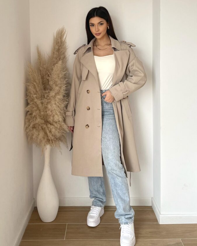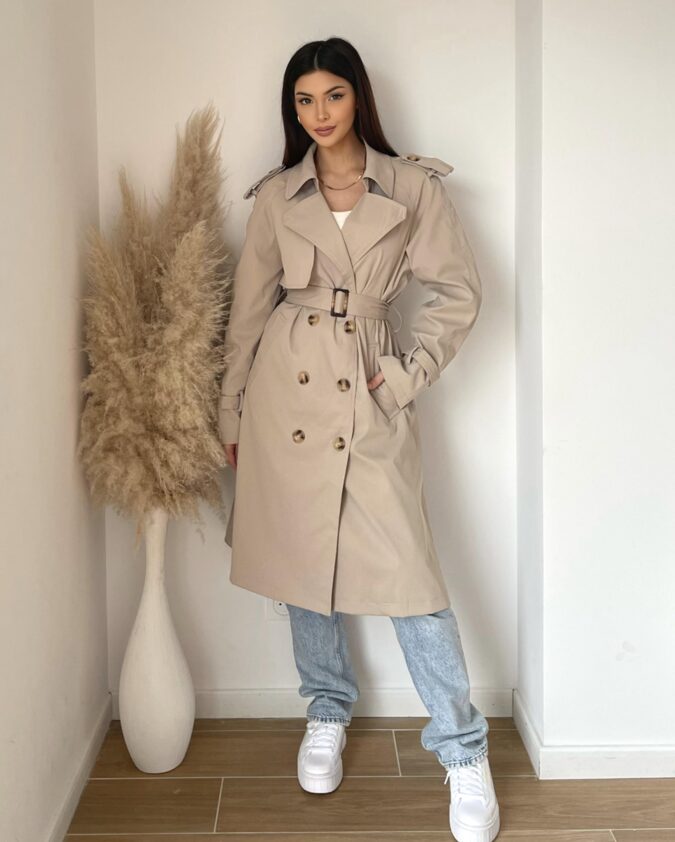 Koolook Καμπαρντίνα με ζώνη – Μπεζ