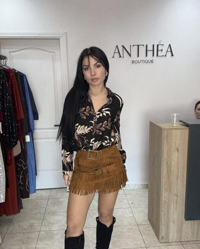 Midi φούστα σε μπεζ-μαύρο χρώμα με αποσπώμενη ζώνη και ψηλόμεση εφαρμογή. Άνετη, διαχρονική και ιδανική για casual ή elegant εμφανίσεις.Σύνθεση: Eco Leather