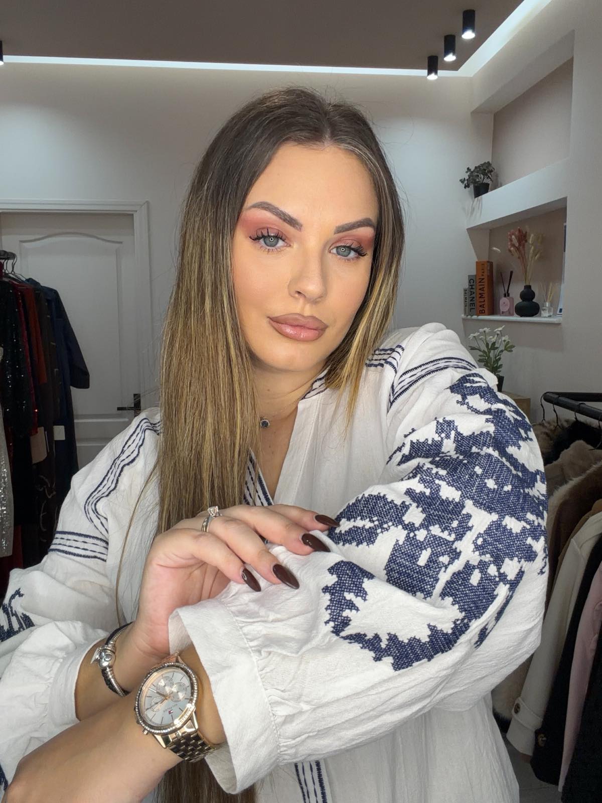 Μπλε κεντήματα σε μανίκια & λαιμόκοψη