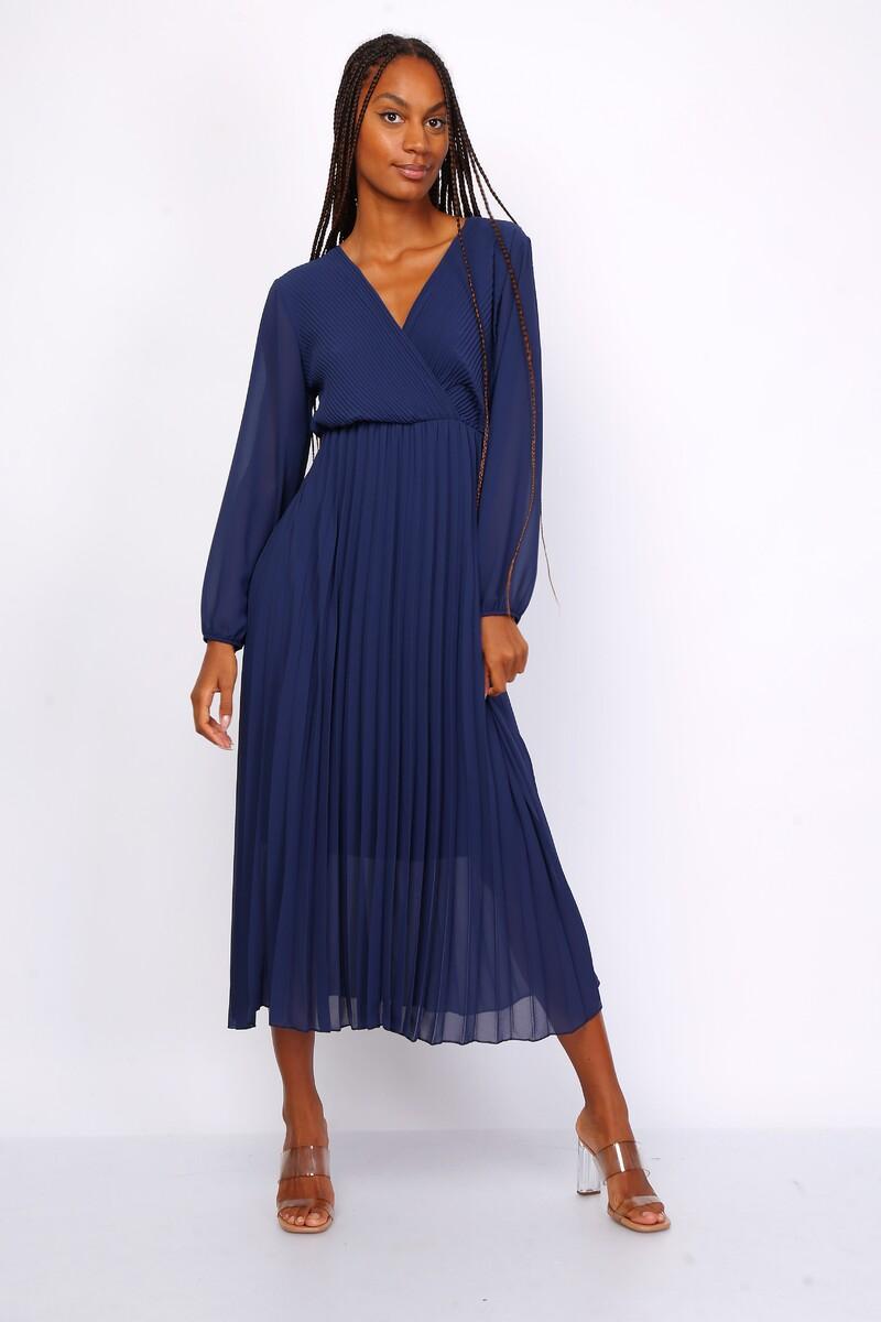 Μακρύ πλισέ φόρεμα – Μπλε σκούρο