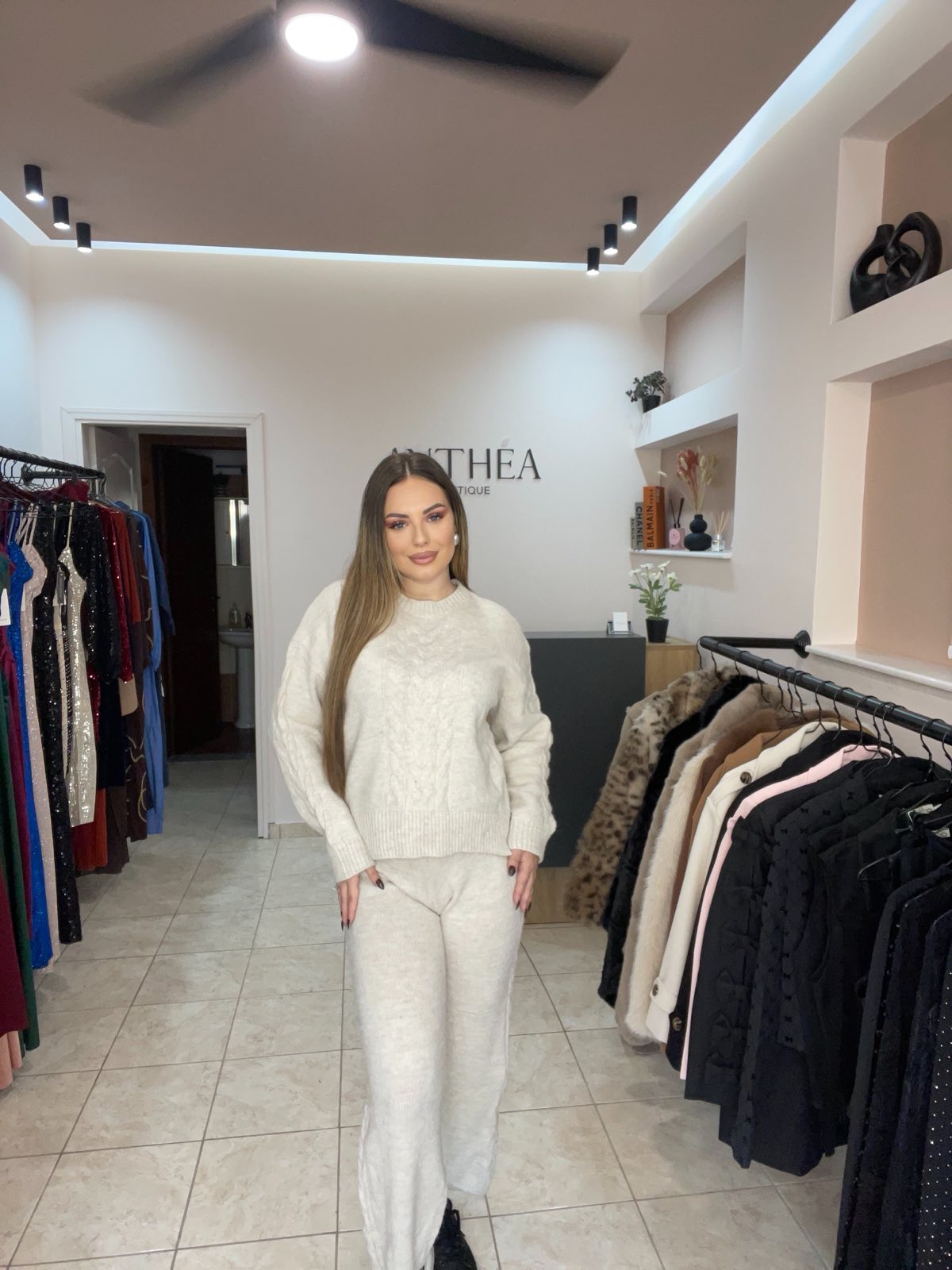 Πλεκτό σετ μπλούζα & παντελόνι σε εκρού χρώμα