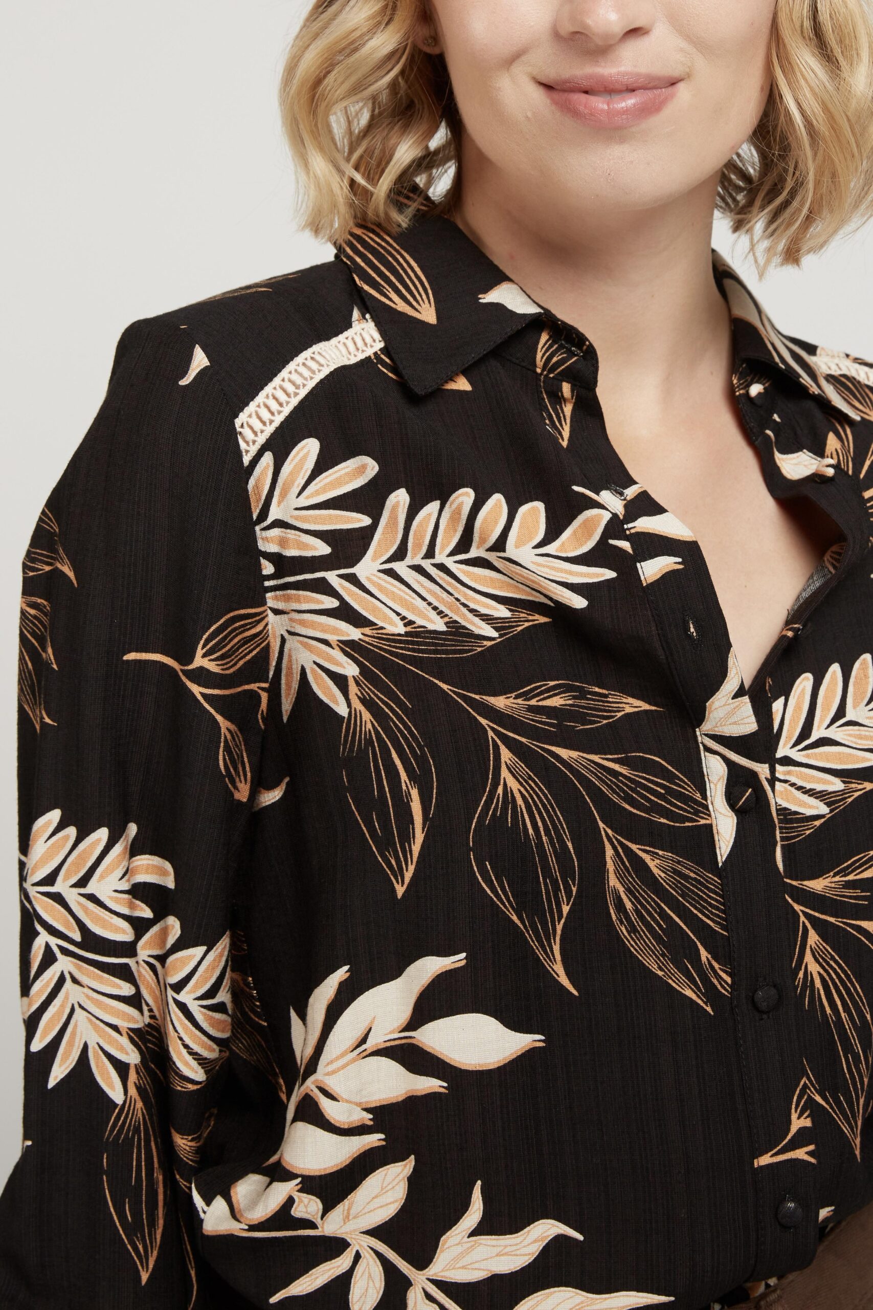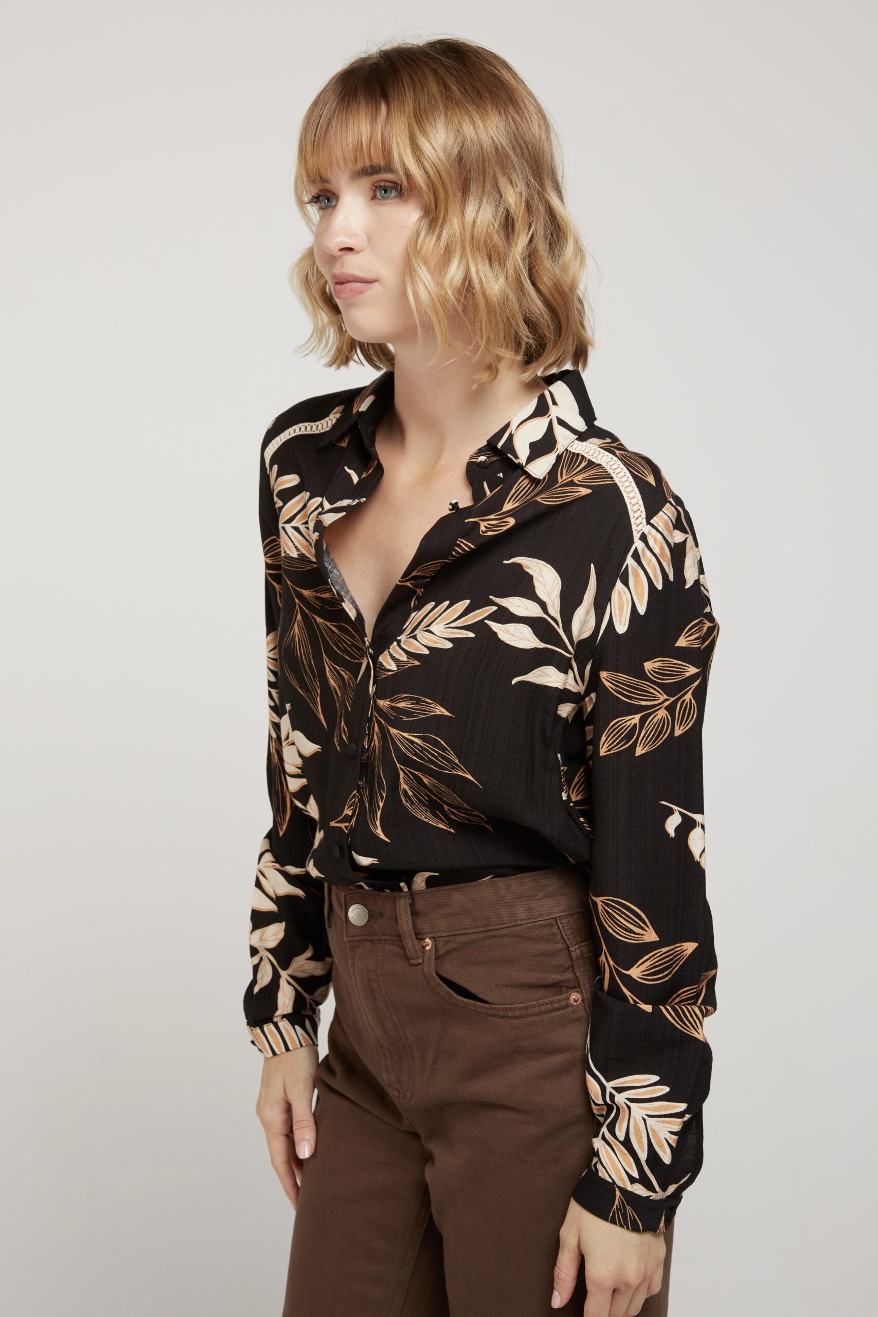 Πουκάμισο με φυλλώδες μοτίβο σε μαύρη βάση.