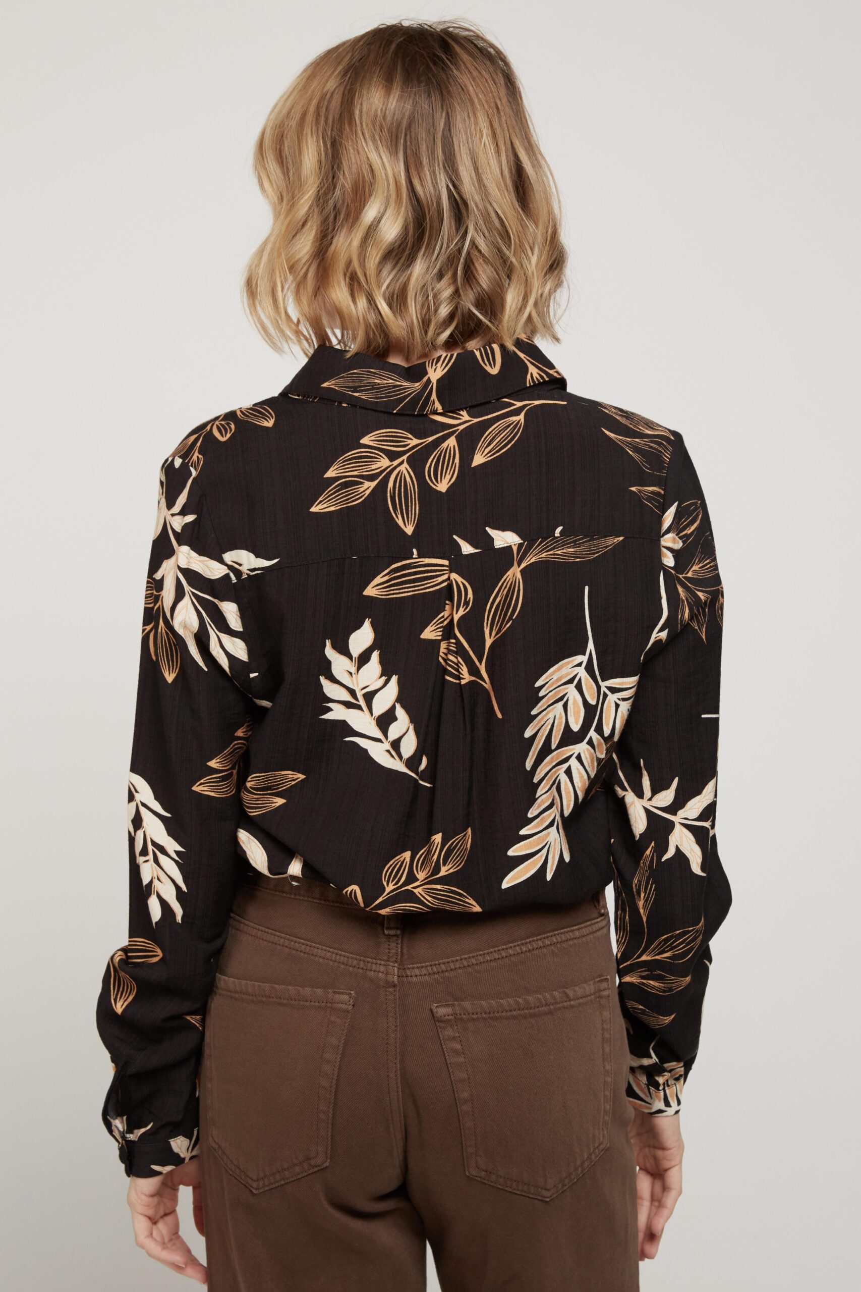 Ανακάλυψε το ιδανικό πουκάμισο με botanical print σε μαύρη βάση και φυσικούς τόνους μπεζ και καφέ.