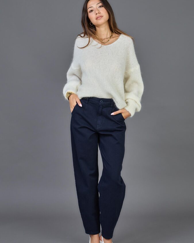 Ψηλόμεσο βαμβακερό παντελόνι – Καμηλό – Dark Blue