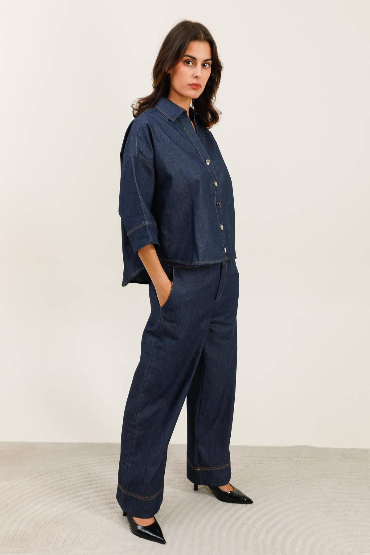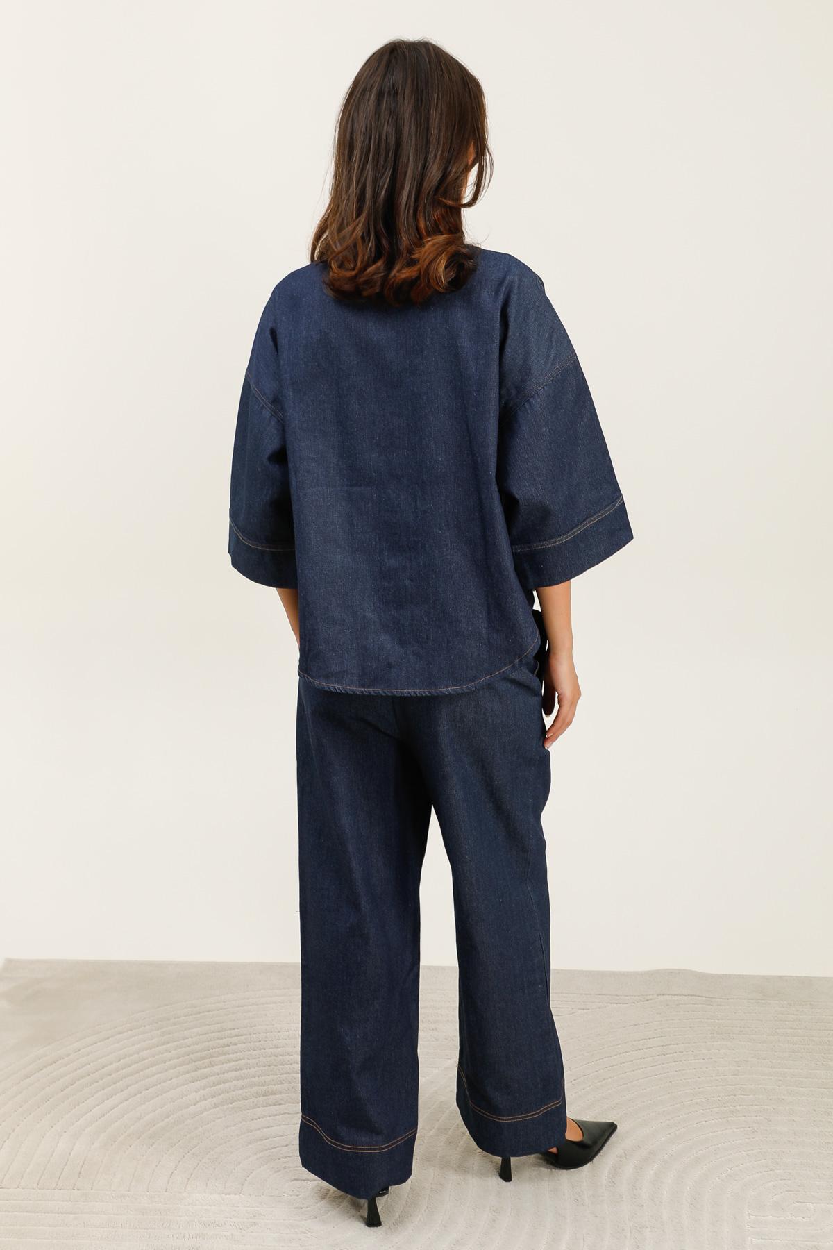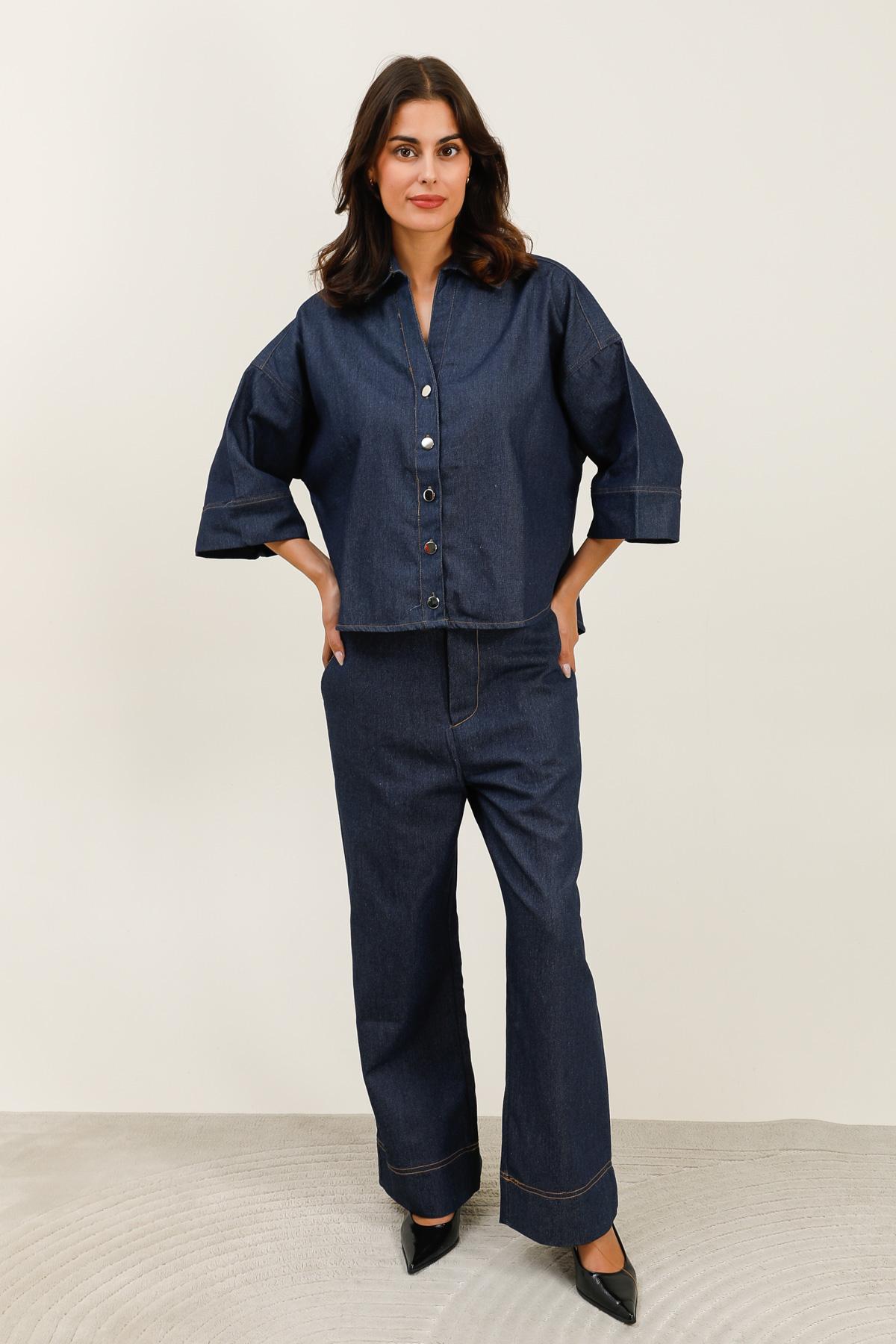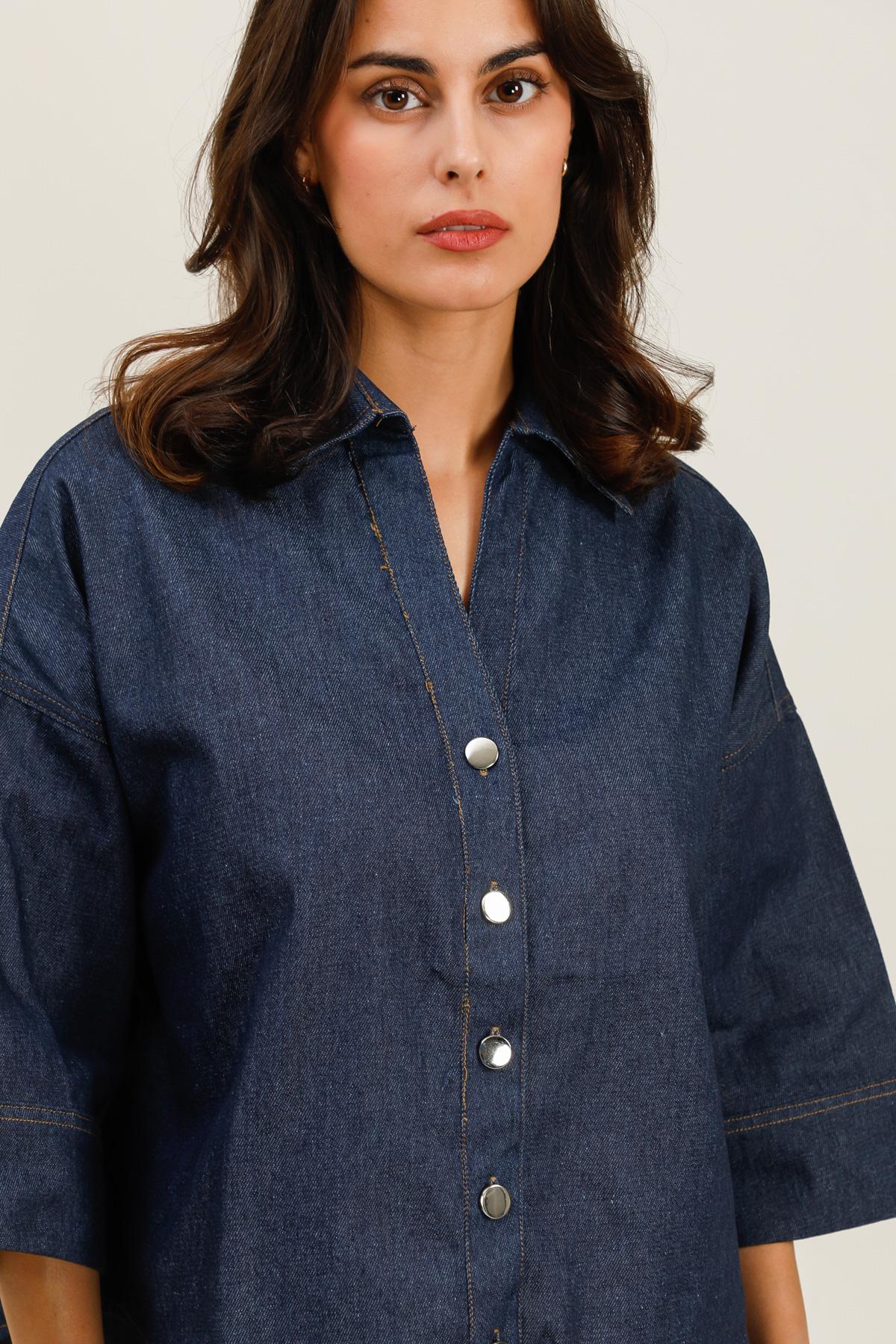 Τζιν μπλούζα με κουμπιά και oversized εφαρμογή.